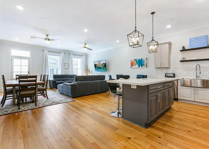Il Modern 5 Bedroom Condo - Large Pool - Near Everything New Orleans, situato a circa 20 minuti a piedi dai Shops at Canal Place, si trova a una distanza di 6 km da un luogo ideale per famiglie come lo Zoo di Audubon. Inoltre, è presente una piscina esterna stagionale per garantire un soggiorno più piacevole.